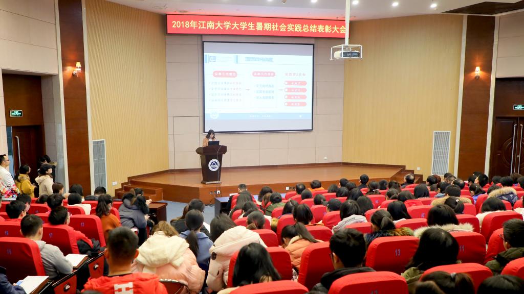 1月16日下午,2018年江南大学大学生暑期社会实践总结表彰大会暨“实践归来话成长”我的青春故事报告会于远东报告厅举行。副校长顾正彪、校党委副书记戴月波、无锡市禁毒支队队长朱凌、校长办公室主任张光生、学生工作部部长张菁燕、校团委书记王维、党委宣传部副部长陆敏芝、各学院党委副书记、分团委书记以及300余名学生代表参加本次活动。会议由校团委副书记魏珍吉主持。