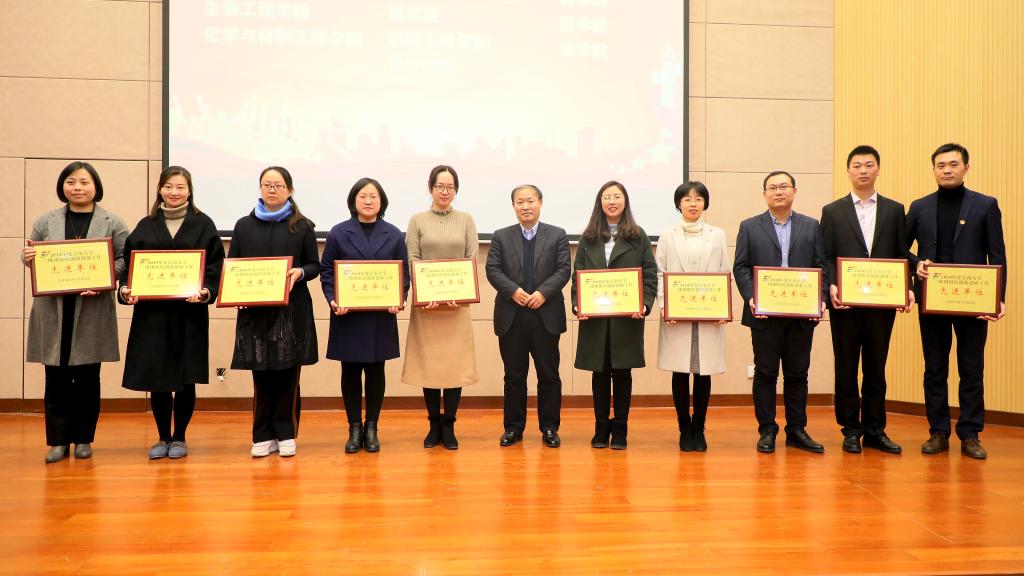 表彰环节,食品学院、商学院、人文学院、生物工程学院、理学院、法学院等11个学院荣获2018年暑期社会实践先进单位。戴月波为获奖单位颁发了荣誉证书。顾正彪为食品学院、生物工程学院、化学与材料工程学院等10个学院颁发了2018年度江南大学二级团组织创新创业工作先进单位荣誉证书。