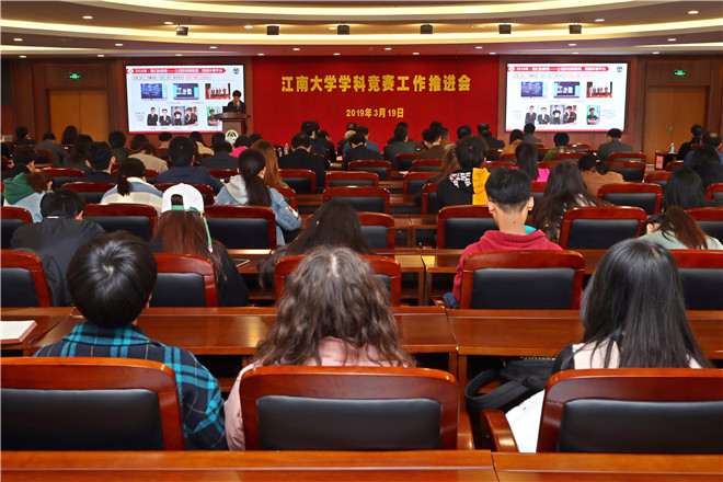 3月19日下午,江南大学学科竞赛工作推进会在图书馆5楼报告厅召开。校党委副书记戴月波,学科竞赛管理工作组成员包括校长办公室、党委宣传部、学生工作处、教务处、科学技术研究院、研究生院、校团委等部门负责人和校学术委员会委员、本科教学指导委员会委员代表等,各学院院长、书记,教学副院长、副书记,各学院竞赛指导教师、竞赛工作辅导员和学生代表200余人出席会议。会议由学生工作处副处长单筱婷主持。
