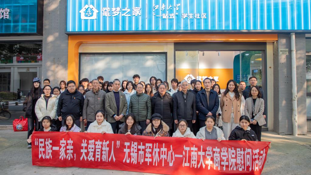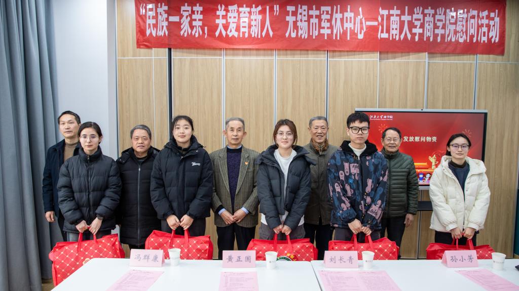 为进一步铸牢中华民族共同体意识,积极做好民族学生思想引导、关心关爱工作,12月18日下午,无锡市军休中心-江南大学商学院“民族一家亲,关爱育新人”慰问活动,在江南大学南区一站式学生社区举办。无锡市军休中心副主任、关工委副主任黄正国,江南大学商学院党委书记刘长青、关工委常务副主任冯群康、党委副书记兼副院长孙小芳,军休中心各服务站负责人及军休干部代表,以及商学院2023级预科班学生代表50余人出席本次活动。活动由国贸2402班李文静主持。