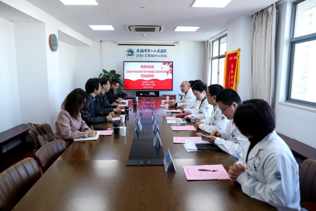 12月24日,江南大学生命科学与健康工程学院党委书记史志洪、院长尹健带队,副院长吴静、院长助理邵安东、办公室主任杨扬一行前往无锡市第二人民医院(江南大学附属中心医院)举行江苏省研究生工作站授牌仪式。此次合作标志着双方在人才培养、科研创新等领域的深度融合,开启了医教协同发展的新篇章。