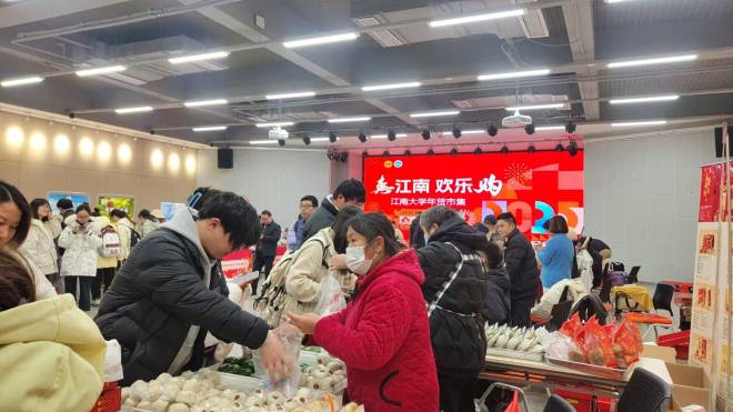 1月8日,由校工会精心策划的“惠江南欢乐购”2025江南大学年货市集在北区大学生活动中心大厅热闹开市,此次年货市集为期2天,以年货采购需求为核心,特邀众多名企、优企进校园,通过搭建普惠平台,将优质服务与优惠产品直接引入校园,让教职工们能够一站式购齐各类年货,轻松畅享便捷购物体验。校党委常委、工会主席朱飞出席活动。