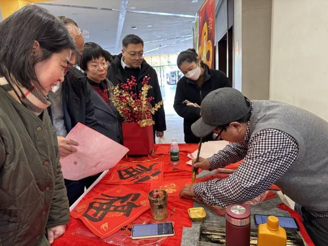 市集上,从礼盒酒品、零食干货到熟食糕点、时尚手作,再到各类“锡”字号品牌和绿色优质农产品,一百多类品牌、一千多种产品供货展销,充分满足对年货产品多元化、个性化、品质化、品牌化的消费需求。为了回馈教职工,商家们纷纷推出了专属优惠,部分商品甚至低于市场价,让大家在享受品质生活的同时,也能感受到实实在在的实惠。活动吸引了众多师生前来采购,现场热闹非凡。大家或仔细比对商品性价比,或向商家咨询产品详情,深入了解商品的性能和特点,挑选心仪的商品,商家们则热情洋溢,耐心解答,提供详细的介绍和专业的购物指导。除了丰富的产品展示,现场还设置了春联书写、幸运抽奖等互动环节,让师生们在享受购物乐趣的同时,也感受到了浓郁的节日氛围和学校工会的贴心与关怀。