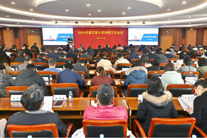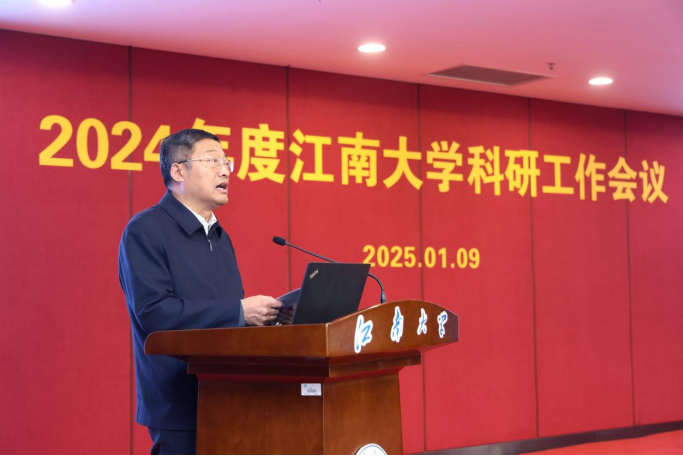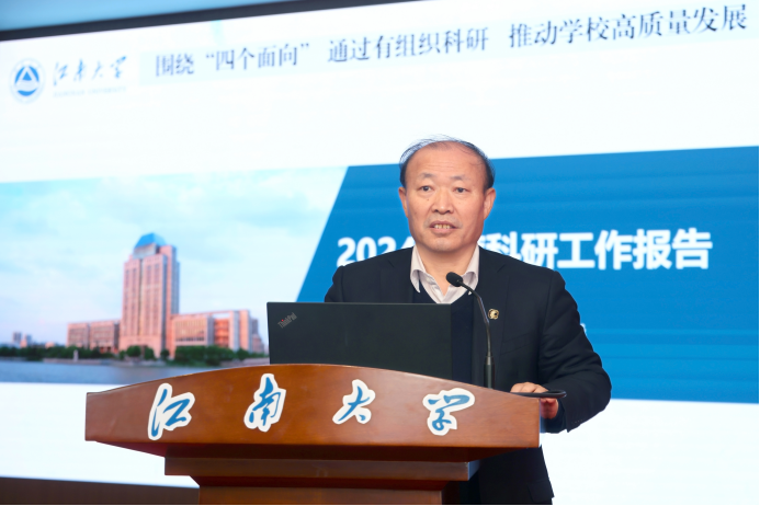 顾正彪作2024年度科研工作报告,总结回顾学校2024年科研工作取得的成绩,明确2025年科研工作的重点。报告指出,学校科研工作以习近平总书记在党的二十届三中全会、全国科技大会和教育大会上的重要讲话精神为指引,围绕“四个面向”战略导向,聚焦发展新质生产力,深化科研政策研究,不断优化学科布局,提升平台有组织科研能力,凝练特色和重点方向,积极推动学科交叉、政产学研融合,高质量有组织打造科研核心竞争力。2024年,全年到账科研总经费13.43亿元,同比增长8.3%;主持国家重点研发计划项目立项7项、课题20项;国家自然科学基金立项150项,再获国家自然科学基金创新研究群体项目1项;获国家科学技术进步奖二等奖1项;人文社科国家级项目首次突破39项,其中重点项目4项,首次同年获批国家社科基金年度项目11项;转让许可专利500件,同比增长13.9%,全年专利转化到账经费6199.4万元;新增7家技术转移分中心,与无锡市各类企事业单位签订横向合同共919项,占全国总量的39.19%,合同总金额达2.21亿元。这一系列令人振奋成绩的取得,无不凝聚着广大师生的智慧和心血。报告还就2025年的基础研究能力提升、平台与团队建设、优秀成果培育、专利转化、市校共建、科研诚信体系建设和保密体系建设等具体工作进行了安排部署。