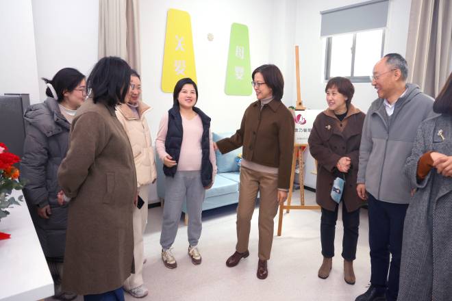 张影陆为女职工康乃馨服务站揭牌。她高度评价了女职工康乃馨服务站建设背后每一位参与者的辛勤付出,并表示,随着社会的进步和家庭观念的变化,越来越多的女性员工在事业与家庭之间寻求平衡。学校一直致力于为教职工创造良好的工作和生活环境,女职工康乃馨服务站的设立,为她们提供了私密安全的休息场所和更加人性化的服务,在全校范围内营造了尊重女性、关爱女性的良好氛围,是学校重视女教职工工作生活的具体体现,希望通过这一平台,继续创新服务形式、激活基层动能、探索更多丰富多元的服务项目和措施,让女教职工切实感受到学校的关爱与温暖。