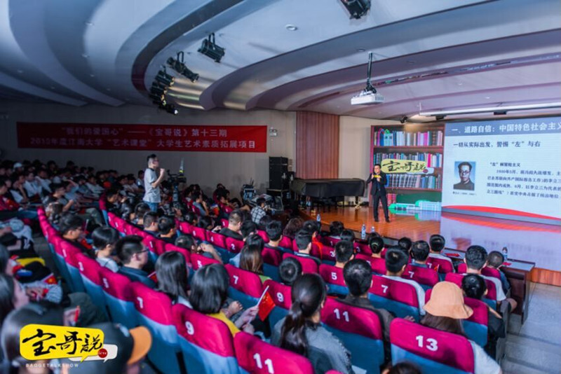 9月26日晚,由党委宣传部、党委学生工作部主办的2019年江南大学艺术课堂拓展项目《宝哥说》国庆专场在北区大学生活动中心开讲。本次活动以《我们的爱国心》为主题,马克思主义学院教授唐忠宝,机械工程学院辅导员李志超,商学院辅导员陈梦结合青年大学生的实际关切,为到场观众带来一场精神盛宴。