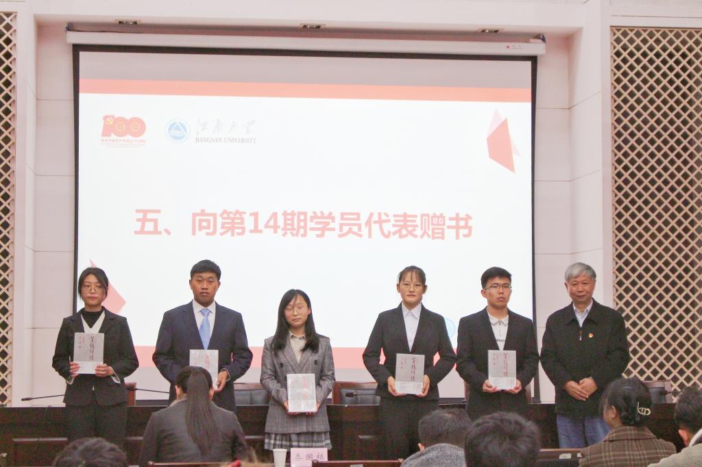 原校党委副书记、校关工委常务副主任娄国栋讲授党课并向学员代表赠送《苦难辉煌》一书