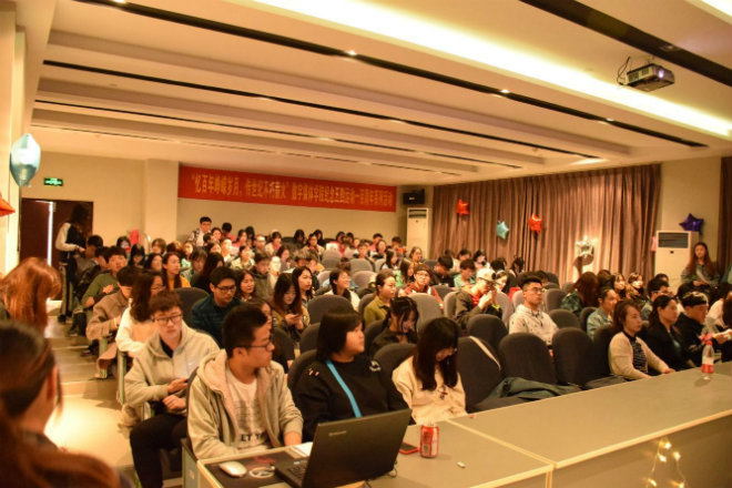 2019年4月28日晚,数字媒体学院第一届“数媒之星”颁奖典礼暨“青春‘动’起来”电影展播在数媒楼116报告厅举行。出席活动的老师有数媒学院院长助理陈祎、分团委书记沈丹、学院辅导员冯永鹏、王牧。颁奖典礼由学生制作的“爱国,爱家,数媒之星闪闪发光”宣传视频拉开序幕。陈祎致辞,她首先代表学院党政向全院青年祝以节日问候,向受表彰得同学祝贺,同时给同学们提了出了三点期望,希望广大青年能坚定理想信念,勇担历史使命;珍惜青春韶华,勇于奋斗拼搏;不断开拓进取,勇敢创新赋能。随后,进行了“学习之星”“志愿之星”“科创之星”“实践之星”及“文体之星”的颁奖。“学习之星”唐幸悦同学讲述了她的学习心得与体会,给在场的同学们分享了许多宝贵经验;“科创之星”王小予与同学现场互动,让在座同学收获颇多。“文体之星”学院排球队成员讲述团队的获奖之路,诠释着青年人执着的追求和为目标不懈拼搏的昂扬斗志。颁奖结束后,观众席上的数媒合唱团成员歌唱起了《我和我的祖国》,随即全场起立高歌同唱,动人的歌声冲击着每个人心灵。合唱结束后开始了“青春‘动’起来”电影展播。