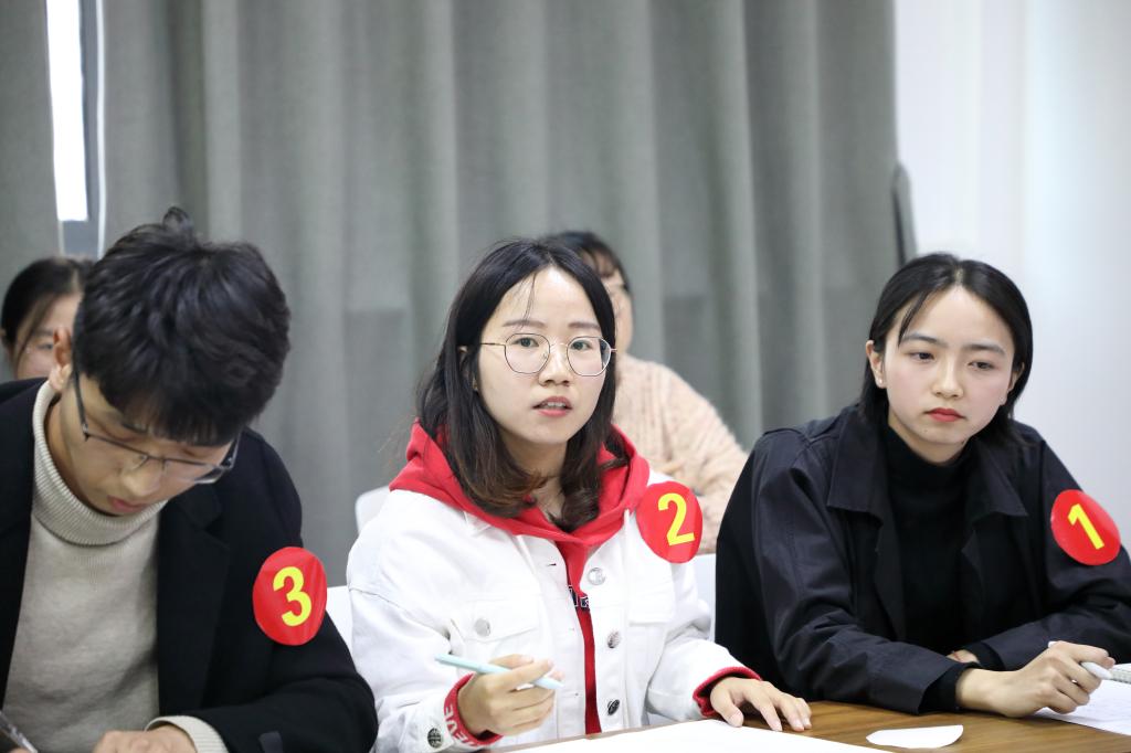 精彩的经验分享之后,由12名研究生同学现场模拟无领导小组会议讨论。对于现场设定的30分钟讨论时间里,同学们自我思考,轮流发言,讨论热烈。结束后,两位嘉宾分别对讨论过程中存在的问题及闪光点进行了一针见血的点评,强调了角色设定、时间把握、思维转变、换位思考和自我表达的重要性。
