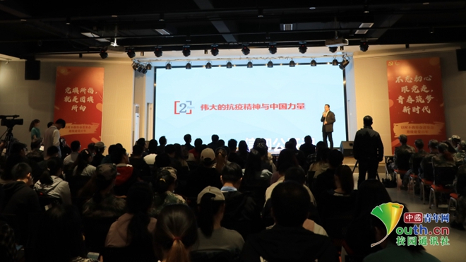 江南大学马克思主义学院教授陈绪为在场师生作了“战‘疫’的青春,‘忠’国的力量”的演讲。青春意味着什么?对他而言,青春是火热的,是向着阳光生长的;青春意味着梦想,青春意味着担当。“每当国家和民族陷入危难的时候,总有那些青春的身影走在最前面。”青春的力量,是在疫情防控的重要组成部分,是实现中国梦的强大助力。
