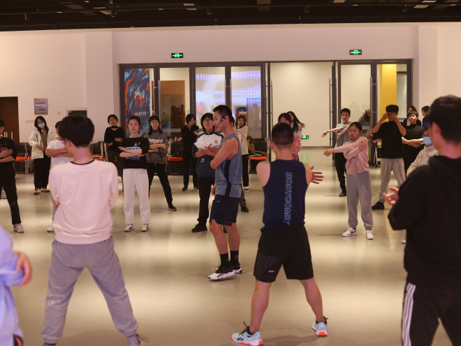 12月1日下午,动感至善之“动感课堂”第五期《刚柔并济之太极》在北区大学生活动中心F105举行。本期“动感课堂”由江南大学体育部张彤副教授担任“嗨课”主讲嘉宾,并邀请专业健身“嗨课教练”带领60名同学参与体验。活动由人文学院辅导员赵将主持。