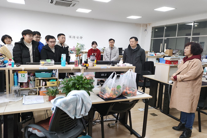 1月20日,理学院党委书记王珏,院长陈国庆,党委副书记陈周和研究生辅导员许金红一行人深入研究生实验室、学生宿舍,慰问寒假留校学生,向他们致以新春祝福。