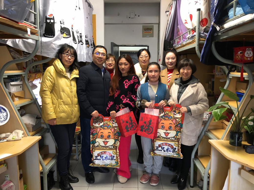 春节将至,年味渐浓。1月26日,正值农历小年,人文学院党委书记姚剑英、院长杨晖、党委副书记兼副院长李萍、分团委书记赵丽敏以及各年级辅导员一行8人来到学生宿舍、研究生工作室,看望慰问留校学生,为同学们带去温暖问候和新春祝福。
