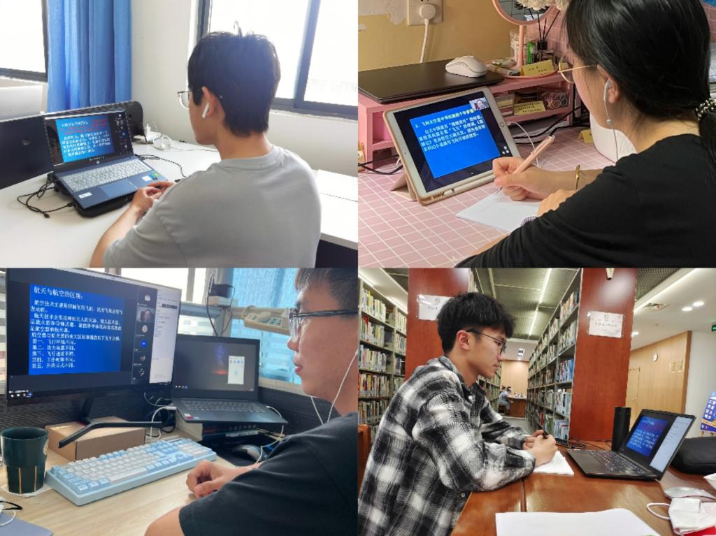 学生在屏幕前认真聆听党课