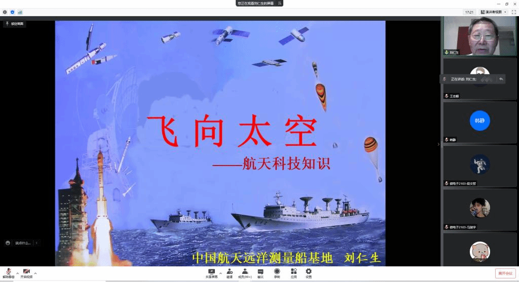 4月24日是第七个“中国航天日”,江南大学物联网工程学院党委在这个特殊的日子里,特邀原中国卫星海上测控部副主任兼总工程师刘仁生为师生讲授中国航天日主题党课。学院教师代表、全国党建工作样板支部大学生创新实践基地党支部党员、分党校第四十三期党员发展对象培训班学员、第十五期入党积极分子培训班学员等近200余人在腾讯会议上聆听党课。活动由学院党委副书记、副院长孔丽丹主持。