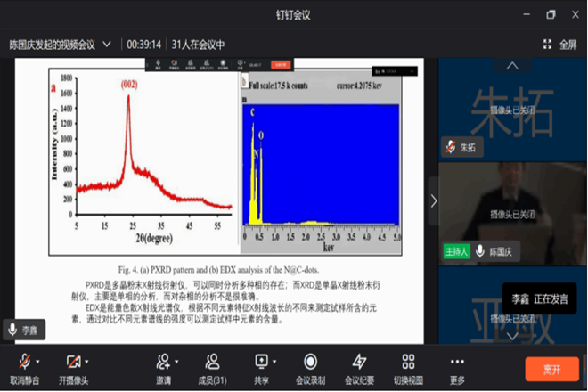 加紧学业指导,跑出“加速度”。导师们借助企业微信、腾讯会议、微信、QQ等线上形式保持密切联系,雷打不动地开展每周1次“云组会”,开展学术指导、科研训练确保培养质量,指导论文修改。高洁老师指导的学生论文近日被计算生物学与生物信息学领域1区Top期刊《Briefings in Bioinformatics》接收;史海峰老师指导的两名学生的论文近日被中科院1区Top期刊《Environmental Science: Nano》和《Chemical Engineering Journal》接收和发表。因论文需求确需使用实验室的,在符合疫情防控要求的基础上,学院审批了科研实验室供师生使用。导师们实时连线视频,对学生的科研实验进行“云指导”“云监控”,保障科研实验安全进行,杜绝防疫措施不到位、风险源管控不力等问题。