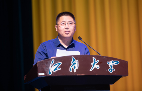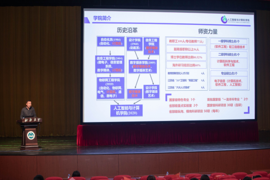 其后,刘渊宣读“智能之星”表彰决定并为“智能之星”颁发荣誉证书。吕天旭作为“智能之星”代表、在校生代表发言,他结合自己在江大的求学经历,分享了自身学习心得,并希望同学们能够在今后的学习生活中能够笑对改变、勇于尝试、勤于思考、进取奉献。