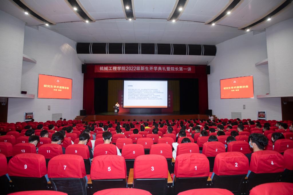 首先,刘禹表达了对机械工程学院252名研究生新生的欢迎,并对他们崭新的研究生学习生涯送上祝福。随后,他向同学们简要介绍了研究生学术不端的定义、分类以及检测情况,让同学们对学术不端有了更加深入的认识。他期望同学们在科研之路上要做到三点:多主动一点、多勤奋一点、多诚实一点。他指出,同学们在求学过程中要认真、务实、科学地完成论文撰写,主动了解研究所(课题组)的研究方向,学习师兄师姐身上的优秀品质,全面学习阅读文献与了解学科前沿。最后,他对所有新生提出希望,愿在座的每一位研究生都能成为具有科学精神的、优秀的人。