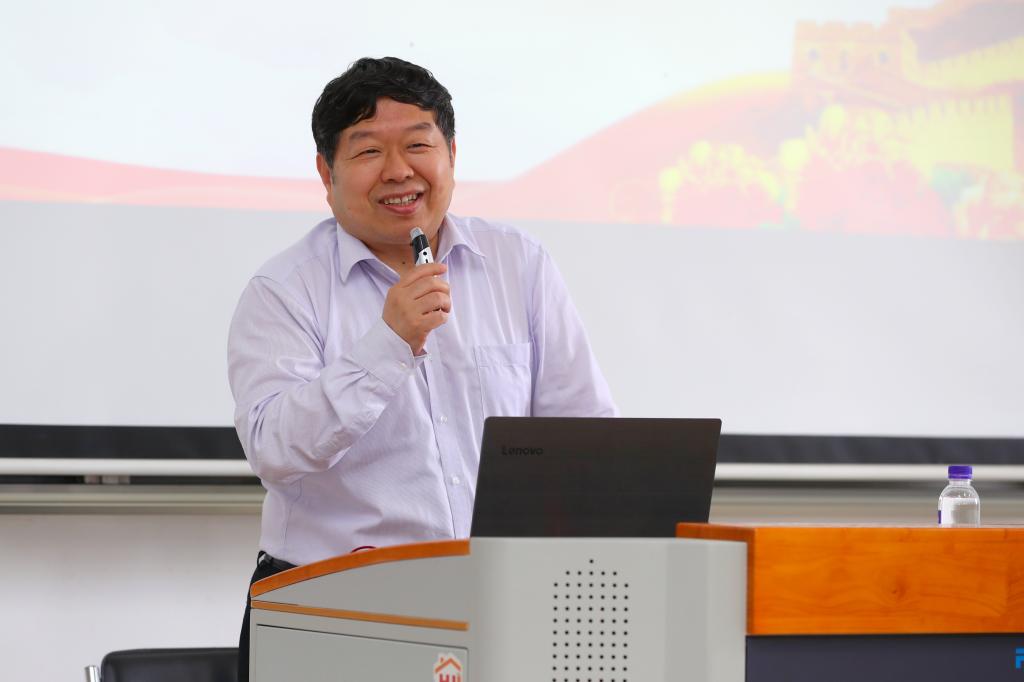 2019年5月17日下午,中国工程院院士、江南大学党委副书记、校长陈坚走进物联网工程学院,为2018级本科生上了一堂别开生面的形势与政策课。课程以“不忘初心铸伟业——聚焦全国教育大会”为主题,自动化、电气、微电子等3个专业的近400名学生聆听了这精彩的一课。学院党委书记程捷音,党委副书记、副院长耿向阳,辅导员侯玉莹、王雪冰等到场听课。