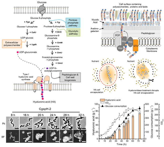 近期我校生物工程学院康振教授课题组在低分子量透明质酸的微生物发酵生产方面取得重要进展。研究成果“Eliminating the capsule-like layer to promote glucose uptake for hyaluronan production by engineered Corynebacterium glutamicum”于6月19日在线发表在《Nature Communications》上。