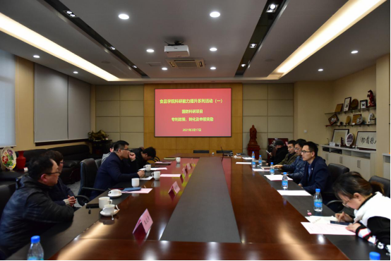 为给全院教师搭建一个政策解读、心得分享、信息互通、观点表达、传帮带携手共进的科研交流服务平台,食品学院计划分不同主题、以不同形式举办“科研能力提升”系列活动。3月17日下午,首场“科研能力提升”讲座在食品楼D910举行。根据老师们的集中需求和建议,邀请了科研院副院长兼军工办主任蔡以兵教授和产研院专利与成果转化课陈晓梅老师为大家解读国防项目和专利方面政策。讲座由食品学院副院长程力主持。