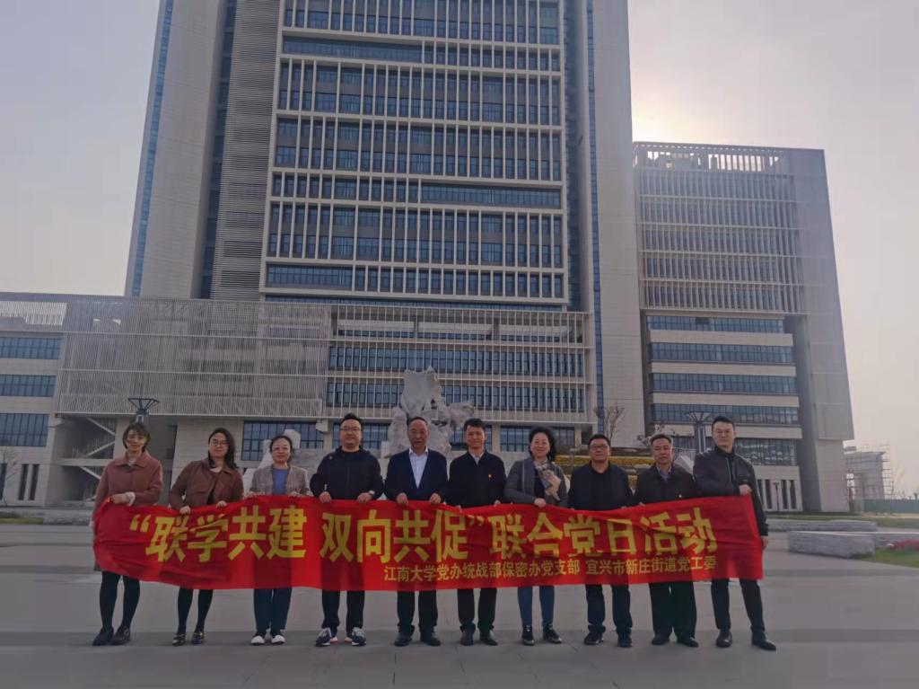近日,党委办公室、党委统战部、保密办党支部与宜兴市新庄街道党工委以“联学共建、双向共促”为主题,联合开展党日活动。校党委常委、党委办公室主任、统战部部长、保密办主任朱飞,机关党委书记朱新伟,宜兴新庄街道党工委书记吴建,双方支部成员十余人参加活动。