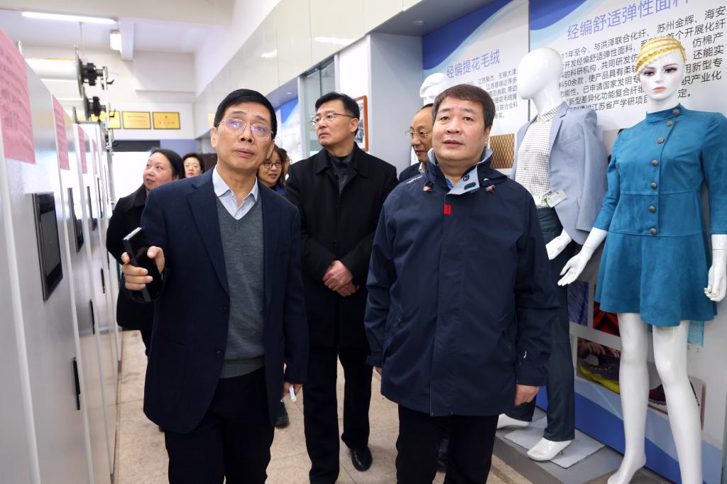 麻建国一行先后参观了学校纺织科学与工程学院针织中心、食品学科史馆、未来食品中心,听取了陈坚院士等相关负责人关于科学研究、校企合作和人才培养等方面的介绍。