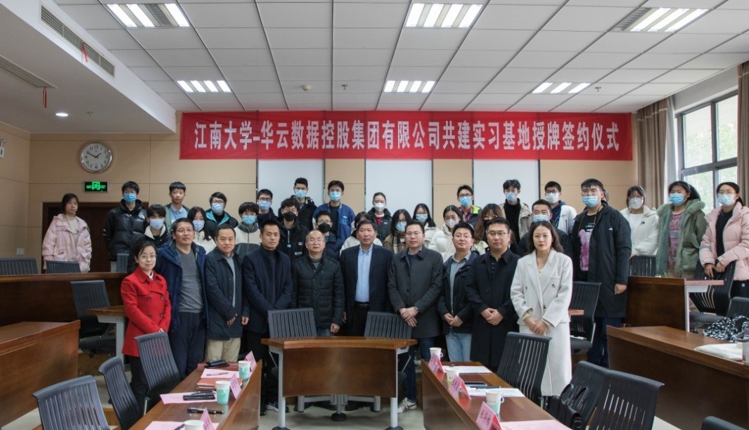 1月4日下午,江南大学—华云数据控股集团有限公司共建实习基地合作签约仪式在商学院116东方厅举行。华云数据控股集团有限公司高级副总裁、江苏省公司总经理张华林,江南大学教务处处长徐学明,商学院院长浦徐进,华云数据无锡总部销售总监王民震,高级客户经理王长伟,东区解决方案部资深售前方案顾问高嵩,总经理助理严颖,商学院副院长王育红,管理科学与工程系主任曹文彬及大数据管理与应用专业本科生代表出席签约仪式。签约仪式由商学院党委副书记徐静主持。
