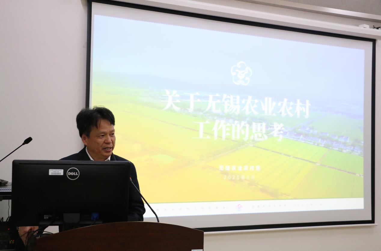 随后,吴立刚为法学院师生作“关于无锡农业农村工作的思考”的专题报告。报告对无锡农业农村事业发展概况、发展历程、发展展望进行了具体展开介绍。他指出,尽管今年全市农业农村工作在新的起点上取得了较好成效,为顺利完成“十四五”各项目标任务打下了良好基础,但在“人、地、钱”等问题上仍然面临较大压力,对照建设农业强国的伟大使命和农业农村现代化的宏伟目标,还有着明显差距。他真诚地向学校毕业生抛出橄榄枝,呼吁同学们积极投身到无锡乡村建设事业当中去,留在无锡、留在乡村,深入感受农民生活、体验农耕、扎根农村,明确未来发展方向,为无锡市农业农村现代化建设注入新动力。