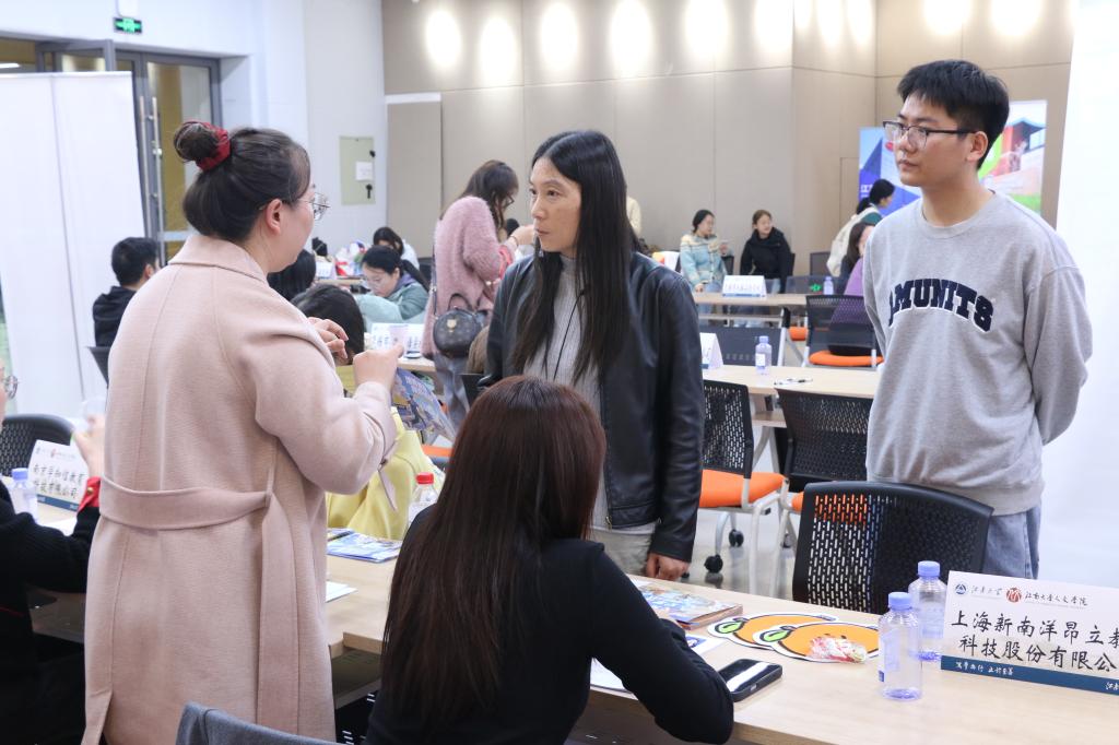 人文学院副院长于书娟在招聘会现场与用人单位深入交流,向用人单位长期以来对学院各项工作的支持表示感谢,并与学生亲切交谈。她表示,学院就业工作要进一步推动招生链、培养链与就业链深度融合,为学生提供更优质的教育资源、更广阔的发展平台和更高质量的就业服务,不断提升学生的创业意识、创新能力和就业竞争力。