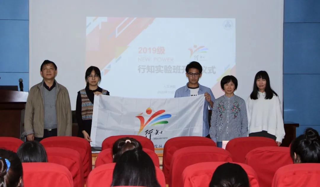 首先,党月瑶老师宣读了新一届行知实验班学生名单。由人文学院党委书记姚剑英老师为新一届行知实验班授予班旗。随后,院党委书记姚剑英、副院长(主持工作)田良臣共同为新一届行知班导师代表颁发聘书。