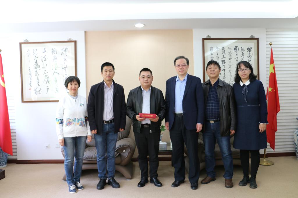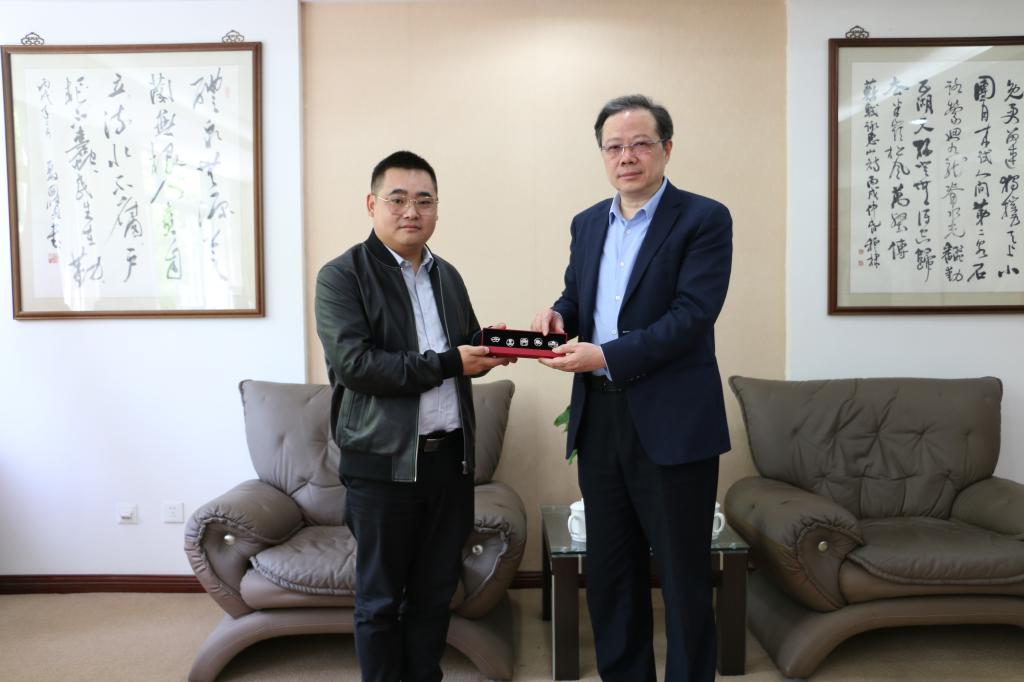 朱庆葆代表学校向王德伟赠送学校纪念徽章