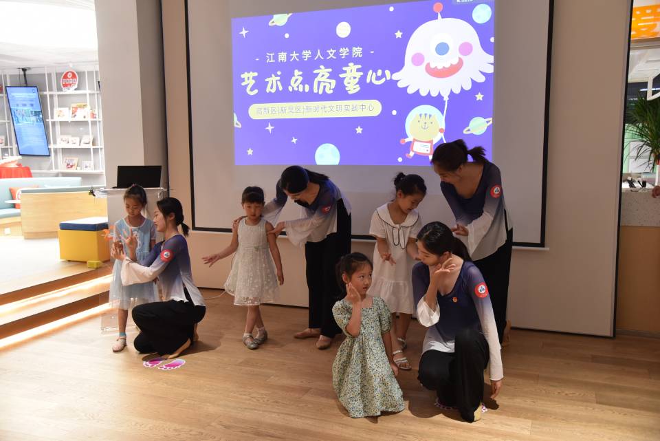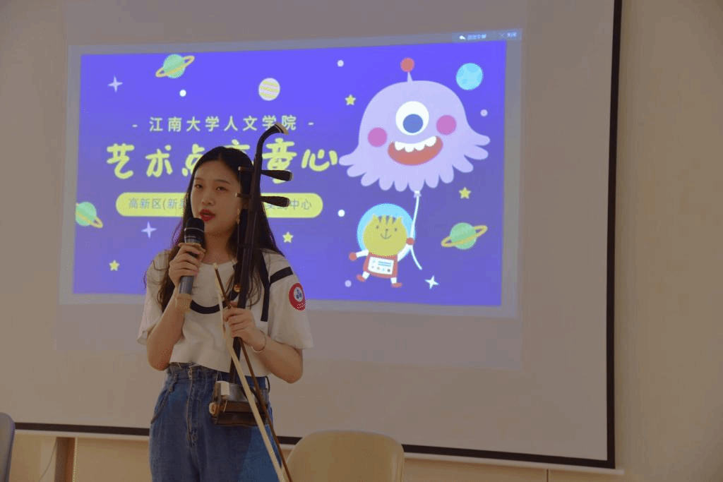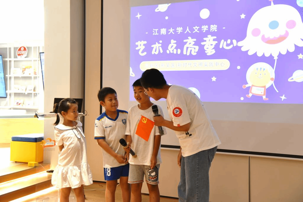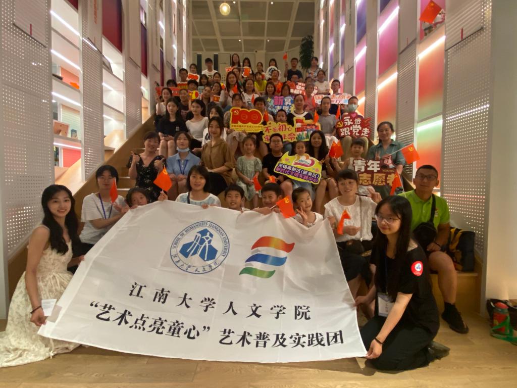 为深化党史学习教育,推动“唱响百年辉煌,凝聚奋进力量”为主题的音乐党史系列活动。7月16日,江南大学人文学院党史学习教育文艺汇演公益团走进无锡高新区(新吴区)新时代文明实践中心开展“艺术点亮童心”暑期社会实践活动,本次活动受到了无锡高新区(新吴区)新时代文明实践中心的大力支持,共有20组家庭参与了本次活动。