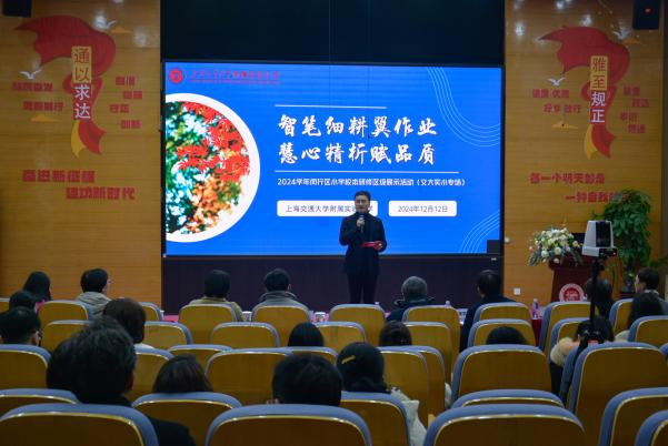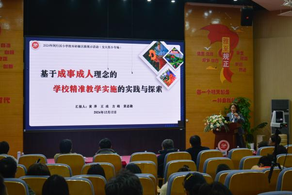 12日下午,培训班来到上海交大附小(西校区),参加2024学年闵行区小学校本研修区级展示活动。黄萍副校长以《基于成事成人理念的学校精准教学实施的实践与探索》为题,分享了学校精准教学实践的探索经验,三位部门主任分别从教研、培训、科研三条路径进行分享。数学杨洁老师为大家带来现场智慧纸笔作业讲评课例,杨老师从学生的实际生活经验出发,通过前期智慧纸笔作业反馈及时捕捉学生的学习情况,从而进行有针对性的讲解和指导。最后,五位不同教龄、学科的老师开展圆桌论坛,畅谈校本研修路上的成长感悟,揭示了精准教学校本研修的丰富内涵和教师心态行为的转变。上海交大附小的精准教学实践,体现了以学生为中心的教育理念,学校在教师培训、教学研究和教育科研方面的积极探索让大家受益颇深。