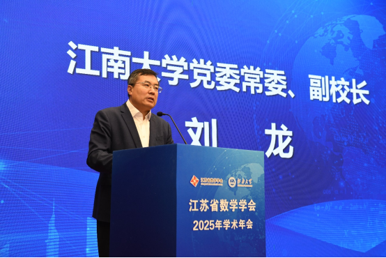刘龙在致辞中向莅临本次会议的各位领导和专家学者表示欢迎和感谢。他首先简单介绍了江南大学的发展现状和数学学科的建设成果,他希望通过承办此次会议,能够不断加强数学学科各专业领域最新进展的交流研讨,围绕发展中的热点、难点和痛点广纳真知灼见,在交流中共进;广聚多元观点,在研讨中互补;广识同侪朋辈,在分享中增谊,并期待各位领导、专家学者一如既往地关心支持江南大学,尤其是学校数学学科的建设和发展。