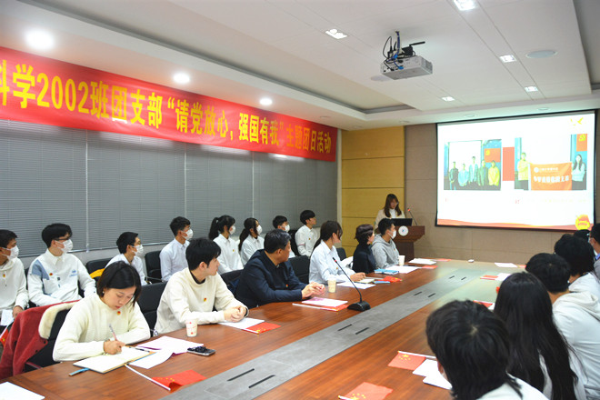 12月15日下午,校党委副书记、纪委书记刘淼参加理学院信计2002团支部“请党放心,强国有我”主题团日活动,校团委副书记杨飏,理学院党委书记王珏,理学院党委副书记、副院长陈周,信计2002团支部共建党支部、应用数学党支部书记张景祥,理学院相关辅导员、班主任和信计2002班全体成员参加,活动由信计2002班班长、团支部副书记刘佳鑫主持。