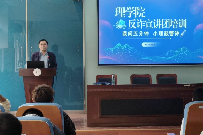 为切实增强师生安全防范意识和反诈防骗能力,10月27日下午,理学院开展“课间五分钟,防诈敲警钟”反诈宣讲团培训活动,特邀请无锡市公安局滨湖分局雪浪派出所董蕾警官进行指导。理学院党委副书记、副院长董小平出席,全体辅导员及各个班级宣讲团成员参加。活动由辅导员苏丹主持。