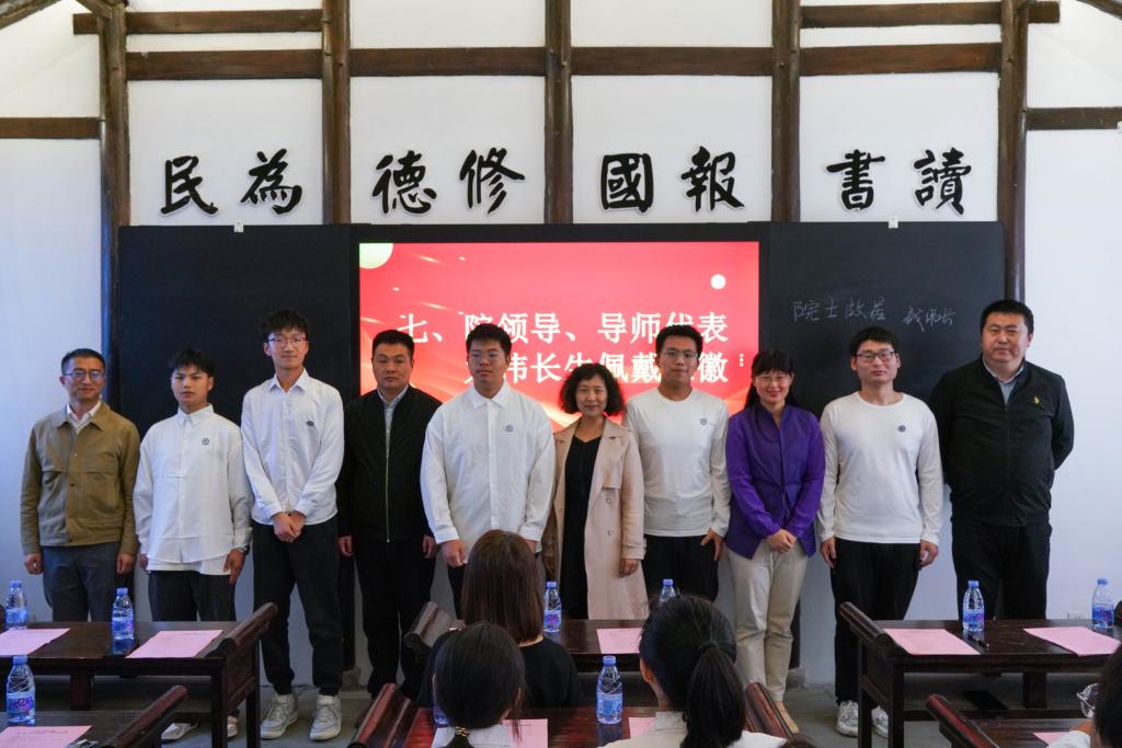 院领导、导师代表为伟长生佩戴班徽