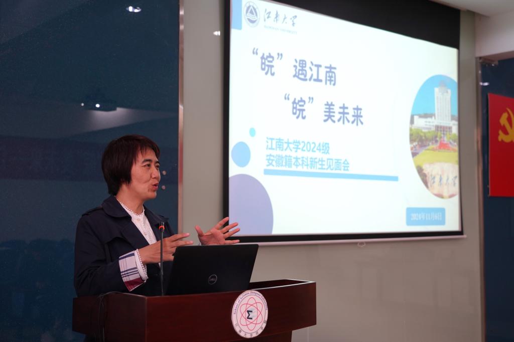 11月6日,江南大学安徽招生组在钱伟长楼202召开了2024级安徽籍本科新生见面会。江南大学本科招生办公室副主任兼教务处副处长戴云,理学院副院长刘朗,安徽招生组组长朱忠明,安徽籍教师代表唐旭清、王纯纯,本科招生办公室郑真真、宋璟,2024级安徽籍新生代表参会。见面会由理学院辅导员李丹主持。