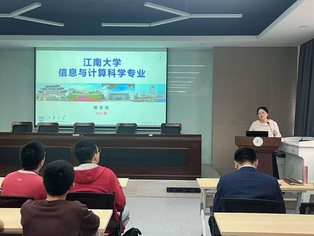 活动邀请到了信计系主任过榴晓、光科系主任刘桂林,为到访的高中学生开展既生动又有趣的专业科普讲座。老师们通过风趣幽默的语言、简明扼要的叙述以及积极有效的互动,迅速增进了来访学生对校史、院史以及学科发展的了解,充分调动了他们对于数理学科的学习兴趣,有效提升了他们成为江南理学人的意愿。