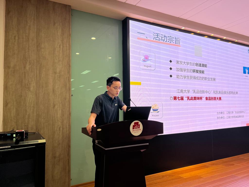近日,第七届“乳此美味杯”食品创意大赛宣讲会在江南大学举办。美国乳品出口协会代表苏畅,美国Actus Nutrition公司业务发展经理张勇,食品学院党委副书记兼副院长李雷,乳品创新中心刘小鸣、刘要卫、刘若男以及100余名学子出席宣讲会。