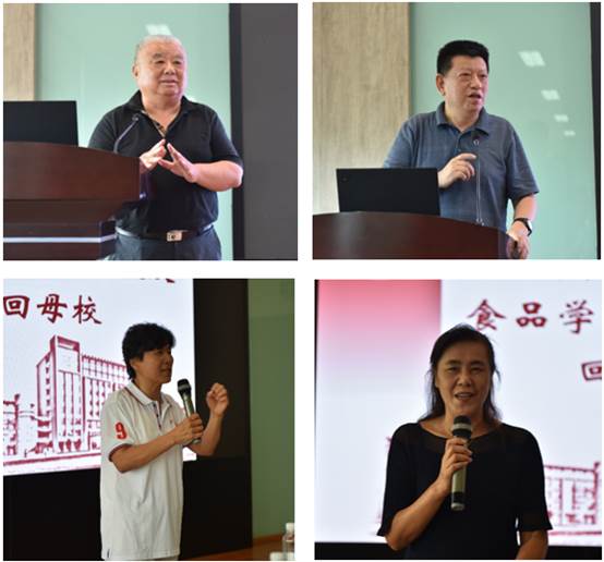 下午两点,校友们伴着蒙蒙细雨相聚于食品楼,首先张文为校友们介绍了食品学院的发展情况,展示了历年校友返校风采。接着老师们对校友们的到来表示热烈欢迎,于民基老师表示母校和学院的发展离不开校友们的关心与支持,欢迎校友们常回母校看看;张灏老师对校友们如今的成就表示了肯定,并鼓励大家积极创业,再为母校发展助力;王海鸥老师回忆了当年上课时的点点滴滴,并嘱咐大家多多保重身体,母校是大家的坚实后盾;曹瑛老师看到同学们熟悉的笑脸,仿佛自己又回到二十年前,为同学们的成长感到十分的高兴和自豪。随后校友们向学院赠送了刻有“情系母校,感恩江大”的太湖石,向琪为校友们浓浓的情谊所感动,她在讲话中提到,1995年和2019年是两个值得纪念的时间,1995年学院成立,师生共同努力,学校进入211,跨越了发展新台阶,2019年校友毕业20年,正值学院软科排名成为全球第一,由衷感谢校友们出色的社会影响力对学科发展做出的贡献。最后校友代表纷纷发言,畅谈往日友情和今日成就,感恩母校培育,并为母校快速发展而自豪,为自己是一名食品人而骄傲。