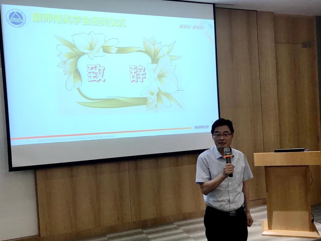 罗之纲首先致欢迎辞,对我院师生的到访表示欢迎,对获奖学生表示祝贺,并向大家介绍了康师傅控股有限公司的发展历程、发展现状以及发展前景,同时期待更多的优秀学子毕业后加入康师傅。张文在致辞中,对康师傅控股有限公司在我校设立奖助学金表示衷心感谢。他希望双方能进一步深化校企合作,实现互惠共赢,同时勉励获奖学子:一是胸怀天下做学问,为食品工业强国梦、中国梦贡献自己的智慧与力量;二是脚踏实地增才干,秉承“江南食品人,敢为天下先”食品精神,积极进取,拼搏奋斗,充分利用学校企业资源增长自己才能;三是饮水思源知感恩,常怀感恩之心,传承发扬大爱精神。苏哲明在讲话中表示希望通过设立奖助学金为国家培育更好的人才,共同为食品工业做出更大的贡献,同时期待校企双方有更进一步的合作。随后,康师傅控股有限公司领导和学校老师分别为获得“康师傅食品科学奖、康师傅助学金”的同学颁奖。