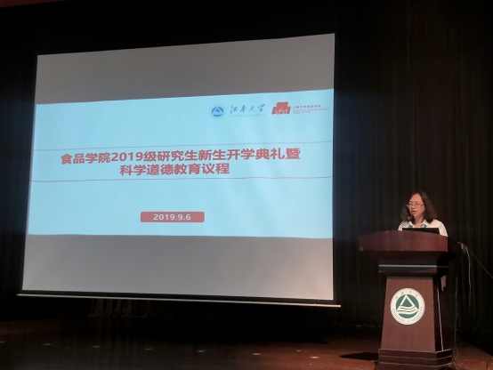 2019年9月6日下午,食品学院2019级研究生新生开学典礼暨科学道德教育在江南大学南区大学生活动中心报告厅举行,食品学院党委书记向琪、副书记张文、副院长王周平、范大明、孙秀兰、各中心教师代表、辅导员以及全体2019级研究生参加了此次活动。活动由学院党委副书记张文主持。