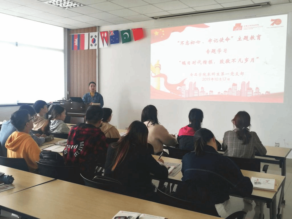 为响应上级党组织关于“不忘初心、牢记使命”主题教育的统一部署安排,强化基层党支部师生党员党性修养,10月17日中午,食品学院本科生第一党支部在学院D917举行“瞩目时代楷模,致敬不凡岁月”专题党课。党课由支部书记胡晓丹主讲,支部全体党员参加。