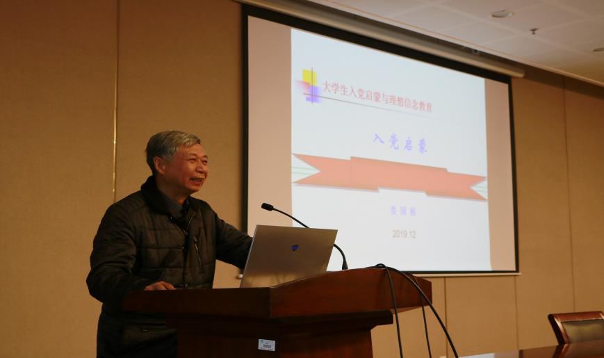 12月4日下午,食品学院2019级本科生入党启蒙教育活动在图书馆三楼报告厅举行。此次活动邀请到江南大学关工委常务副主任娄国栋主讲,食品学院党委副书记张文主持报告会,2019级全体同学聆听了报告会。