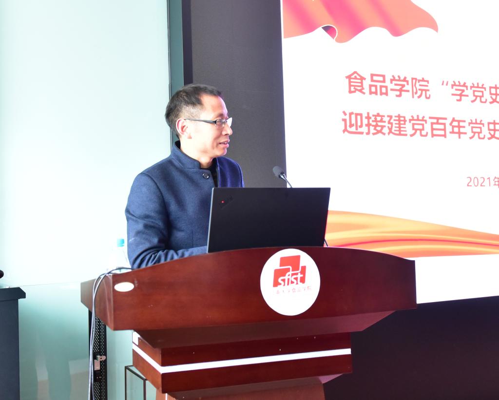 在启动仪式上,学院邀请到马克思主义学院教授刘大禹带来题为《以史为鉴,面向未来:学习习近平总书记关于“四史”的重要论述》的学习报告,拉开食品学院党史学习教育的序幕。刘大禹从总结历史经验、吸收历史养分、肩负历史使命三个方面,从史学的角度,用大量丰富的史料讲述“为什么要学史、怎么学史、怎么用历史指导实践”,使现场师生受益匪浅。