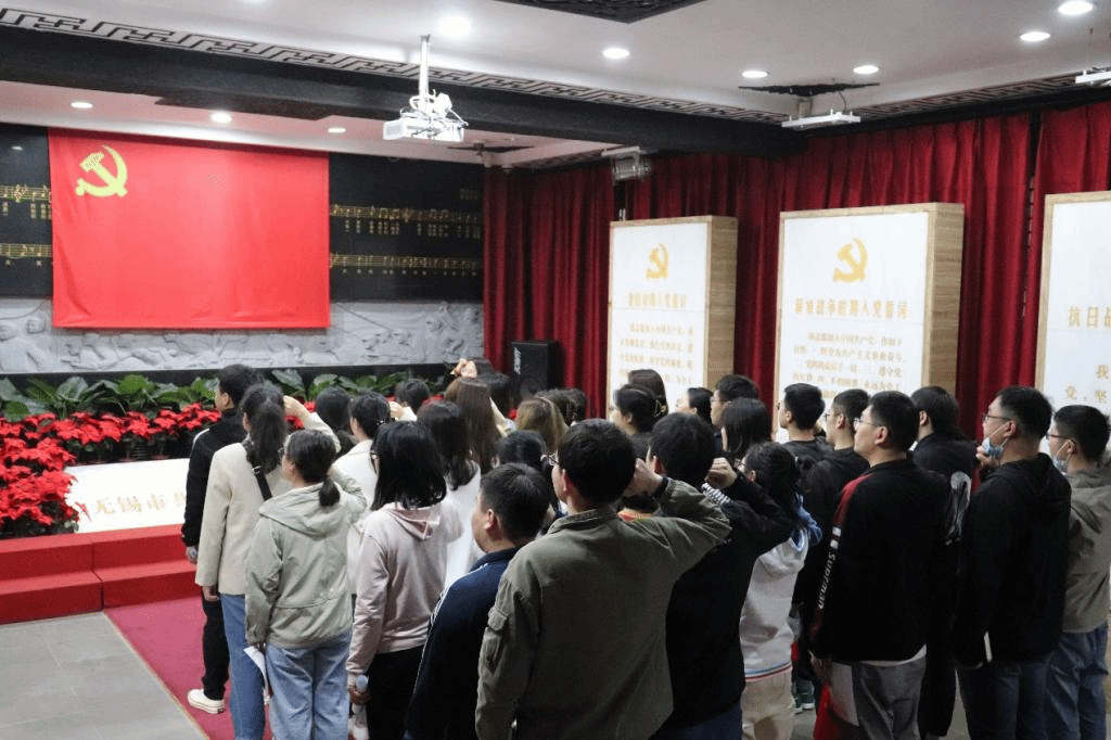 随后,党员们共同参观了展馆周围陈列的“无锡杰出共产党人”“无锡人民革命史”的板画,在党旗之下,重温入党誓词。环绕大厅的是饱含革命故事的生动浮雕和五块不同历史时期的誓言碑,这些都承载着誓言中神圣的信念感。
