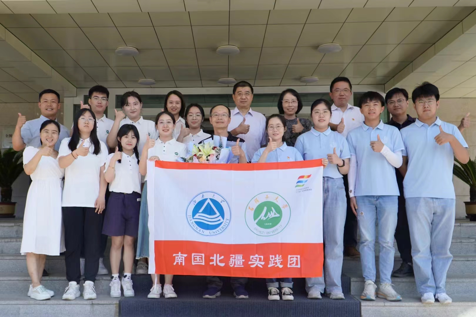 今年暑期,“南国北疆”大学生联合实践团再次出征。7月7日,在无锡江南大学,食品学院党委副书记、副院长李雷为联合实践团授旗,开启华东之旅;7月15日,在新疆石河子大学,学院党委书记傅莉莉、石河子大学食品学院党委书记程卫东共同为联合实践团授旗,启动新疆之行。