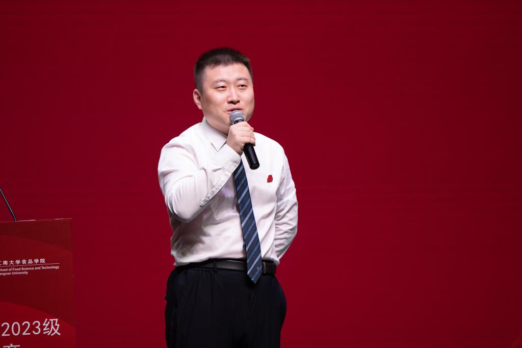 范大明对研究生新生的加入表示热烈欢迎。他强调,研究生阶段要深化交互认知,与导师同频共振;要强化时间管理,以课题为主脉络开展多维度学习研究;要培养“专家思维”,从更高的层面看待科学问题。他希望同学们积极践行“敢为天下先”的江南食品精神,都能取得优异的成绩。